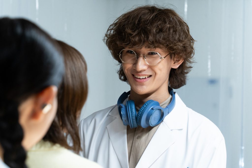 - 師匠の真似をするシーンがあるんですけど、台本には無くて、アドリブなんです。いつかは真似したいと思っていたのが、師匠が白衣を着て「では、始めましょう」と言う一連の流れで、監督に「真似したいです」って相談したら「良いね!」となりました。僕だけするもなんなので、撮影の時にはさくらさんと一緒にやりました。第2話で師匠が「では、始めましょう」って言う後ろで所長も一緒にやっているシーンがあって、それを見て全員でやったら面白いんじゃないかと思ったんです。最終話では全員で白衣を着るシーンがあり、見たかったシーンが再現できました。