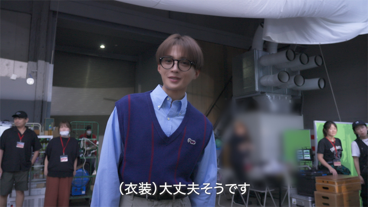 デートシーンとは打って変わって可愛らしい衣装にメガネというスタイリングにチェンジした八木さん。メイキングではカメラに向かってポーズを決めてくれました。
