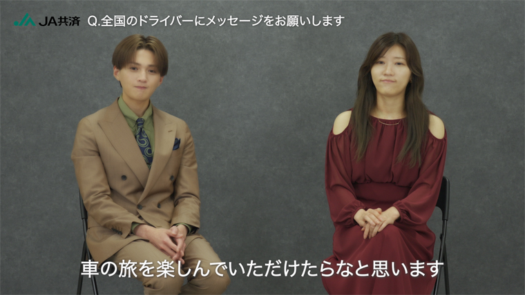 Q6【おふたりに】今回のCMは交通安全の啓発が目的です。全国のドライバーへメッセージをお願いします。