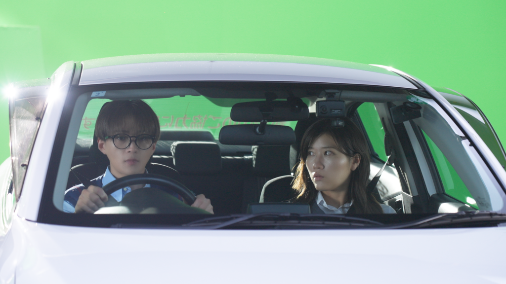 TVCMは、グリーンバックの前に車を停めて撮影し、CGで車窓や背景を合成しました。撮影の合間には、八木さんがそのCGを使って、スーパーマンになって空を飛んでいるかのように遊ぶ微笑ましい様子も見られました。