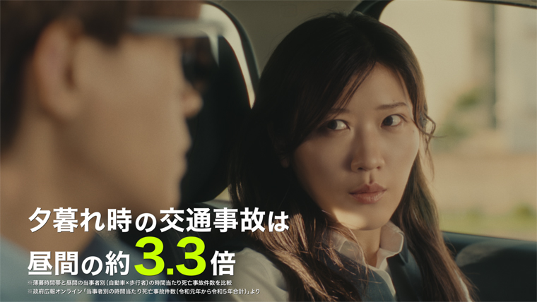 新TVCMは、夕暮れ時の早めのライト点灯を呼びかける「早めにライトオンする八木勇征篇」、スマートフォンのながら運転を注意喚起する「運転中はスマホを見ない八木勇征篇」の2本を公開・放映する。八木とヒコロヒーのふたりが、恋人役や教官・教習生役を熱演しながら、それぞれのテーマにそって、コミカルかつ分かりやすく交通安全の重要性を視聴者に訴える内容となっている。