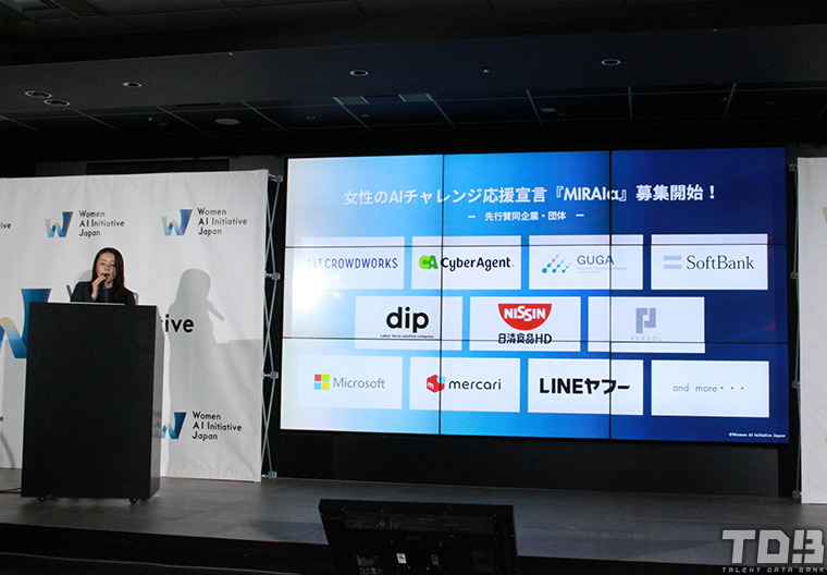 Women AI Initiative Japan代表理事の國本知里氏が登壇し、AIによる労働市場の変化と女性のキャリアへの影響を踏まえ、リスキリングによる新たなキャリア形成の可能性と、日本マイクロソフトとの提携プロジェクトの第一弾を発表。また、日清食品やパナソニック、サイバーエージェントなど複数の企業が賛同を表明し、同日より新規募集を開始する「女性のAIチャレンジ応援宣言」の詳細が明らかになった。さらに独自調査をもとに作成した白書も初公開され、データが示す“女性×AI”の可能性が紹介された。