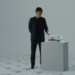 撮影現場の反町は、終始落ち着いた雰囲気をまといながらも、セットに足を踏み入れると一気に空気が引き締まるような存在感を放っていた。床一面に無数の印刷物が設置された抽象空間の中で、真っ直ぐにプリンターへと向かう姿は、まさに「信頼感」と「王道感」を象徴する光景だった。