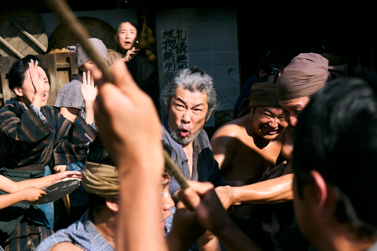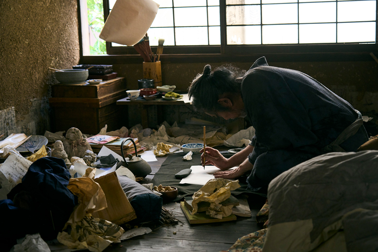 世界的に知られる天才浮世絵師・葛飾北斎。その天才性だけでなく、愛犬に振り回され、娘にだけ見せる父親としてのユーモラスな一面をもあわせ持つ“素の北斎”を、永瀬正敏が全身で体現した。