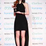 肩を出した大人の色気漂う黒のドレスに、スエード素材のライトパープルのハイヒールを履いて登場した髙橋。2019年に同賞で『ティーン部門』を受賞した髙橋は「その時はこの場に参加させていただくことができなくてすごく残念に思っていた。その時に選ばせていただいた靴がお家にあるんですけど、自分が足を綺麗に見せたくて選んだと思うんですけどその時に履けなかったのが悔しかった」と明かしつつ、今回20代部門で受賞できたことに「20代部門で新たに賞をいただくことができて、実際にトロフィーを持ててこれがよく見てたやつだと思ってすごく嬉しかった」と6年ぶりのリベンジを喜んだ。また今回の受賞について「幼少期から母に脚をしっかりしなさいとか脚を広げないとかすごくマナーをたくさん教わっていたので、自分が脚に自信を持てるのは母の教育があってこそだなと思うので、母にも感謝を伝えたい」と笑顔をみせた。
