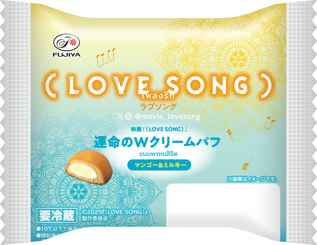 映画『(LOVE SONG)』をイメージした、「映画『(LOVE SONG)』運命のWクリームパフ(マンゴー&ミルキー)」は、映画の舞台や世界観をフレーバーやパッケージデザインで表現。また、映画公開を記念して、本日10月7日(火)14:00よりSNSキャンペーンを開始する。