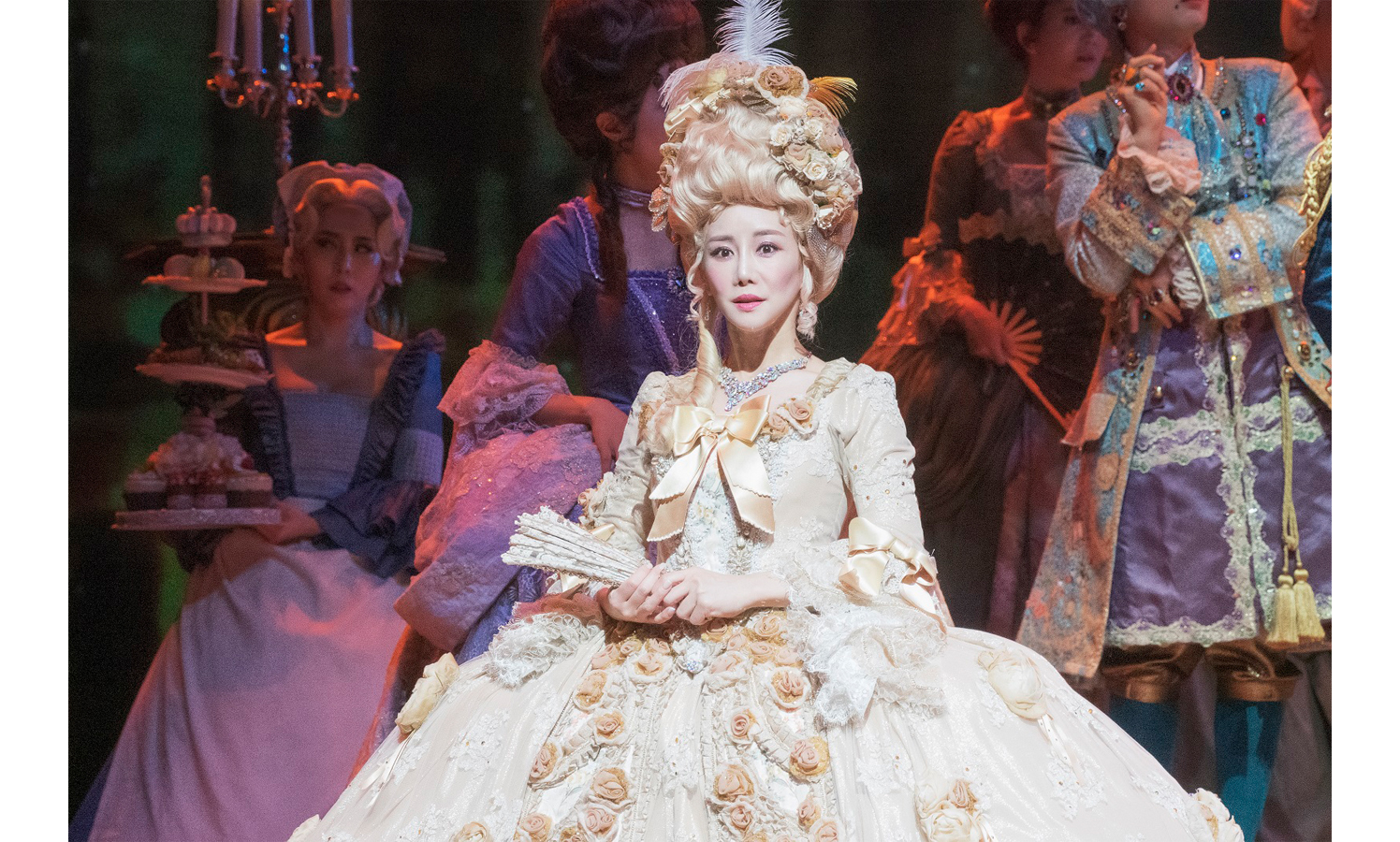 11月14日(金)より公開となる『マリー・アントワネット』は、作家・遠藤周作の小説「王妃マリー・アントワネット」を原作に、ミヒャエル・クンツェ(脚本・歌詞)、シルヴェスター・リーヴァイ(作曲・編曲)のタッグで2006年、東京にて世界初演。その後、登場人物を含む脚本が大幅にアップデートされ、韓国版の新演出はロバート・ヨハンソンが担っている。見どころは宮廷を中心に紡がれる複雑かつ濃密な人間ドラマとゴージャスな衣裳、それに呼応するような盆を多用した舞台装置となっている。