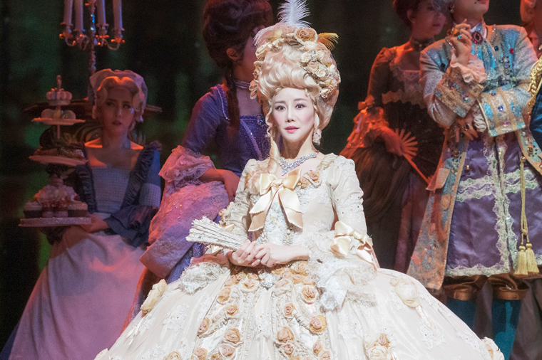 11月14日(金)より公開となる『マリー・アントワネット』は、作家・遠藤周作の小説「王妃マリー・アントワネット」を原作に、ミヒャエル・クンツェ(脚本・歌詞)、シルヴェスター・リーヴァイ(作曲・編曲)のタッグで2006年、東京にて世界初演。その後、登場人物を含む脚本が大幅にアップデートされ、韓国版の新演出はロバート・ヨハンソンが担っている。見どころは宮廷を中心に紡がれる複雑かつ濃密な人間ドラマとゴージャスな衣裳、それに呼応するような盆を多用した舞台装置となっている。