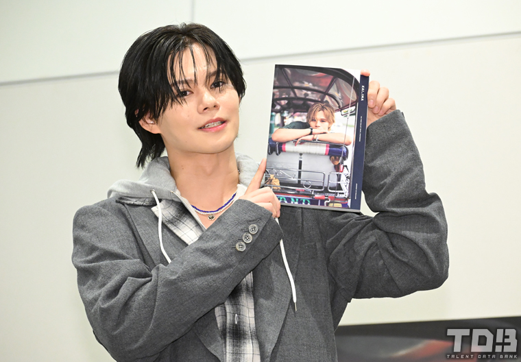 そんな本作のお気に入りカットには8ミリフィルムで撮ったビデオのコマにしたページをセレクトしたカイ。選んだ理由について「ガチ寝起き(笑)」と照れながら説明し、「カメラマンさんが僕の部屋に侵入してきて撮影した時の僕の足の裏です。すごくオフ感があってすごく好きなカットです」と笑顔をみせた。