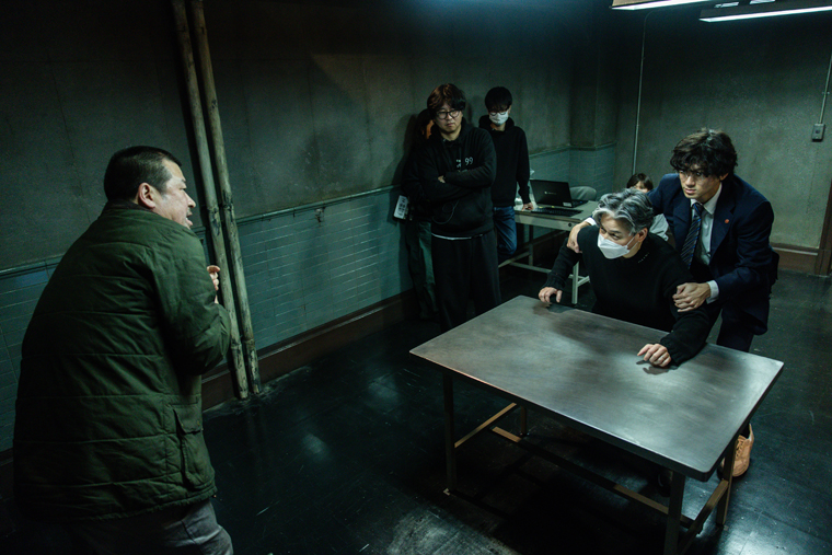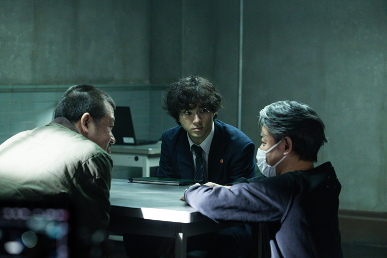 取調室の撮影は、都内ビルの一室に作られたセットで、脚本の冒頭から順を追って撮影を進める「順撮り」によって行われた。伊勢や清宮がタゴサクに振り回されるのを後ろから見ていた類家と同じように、今か今かとタゴサクと対決する瞬間を待ち侘びていた山田。ついに類家とタゴサクが対面するシーンの撮影は、「よーい、スタート!」という監督の掛け声に続いてその興奮や激情がぶつかり合う、とてつもない集中力と爆発力に満ちたひと時となった。
