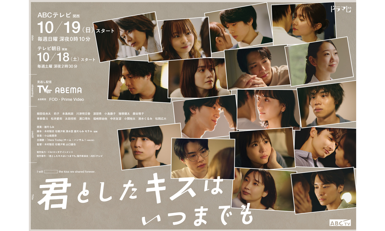 メインビジュアルに描かれているのは、儚くも美しいラブストーリーを紡いでいく総勢17名の登場人物たち。かつて小学校だったホテルに所縁ある人々が集い、懐かしい場所に想いを馳せ、ふと人生を顧みるとき、それぞれの想いが交わりながら物語は動き出す。毎話、切なくて尊いキスを描くオムニバス・ストーリーに注目だ!