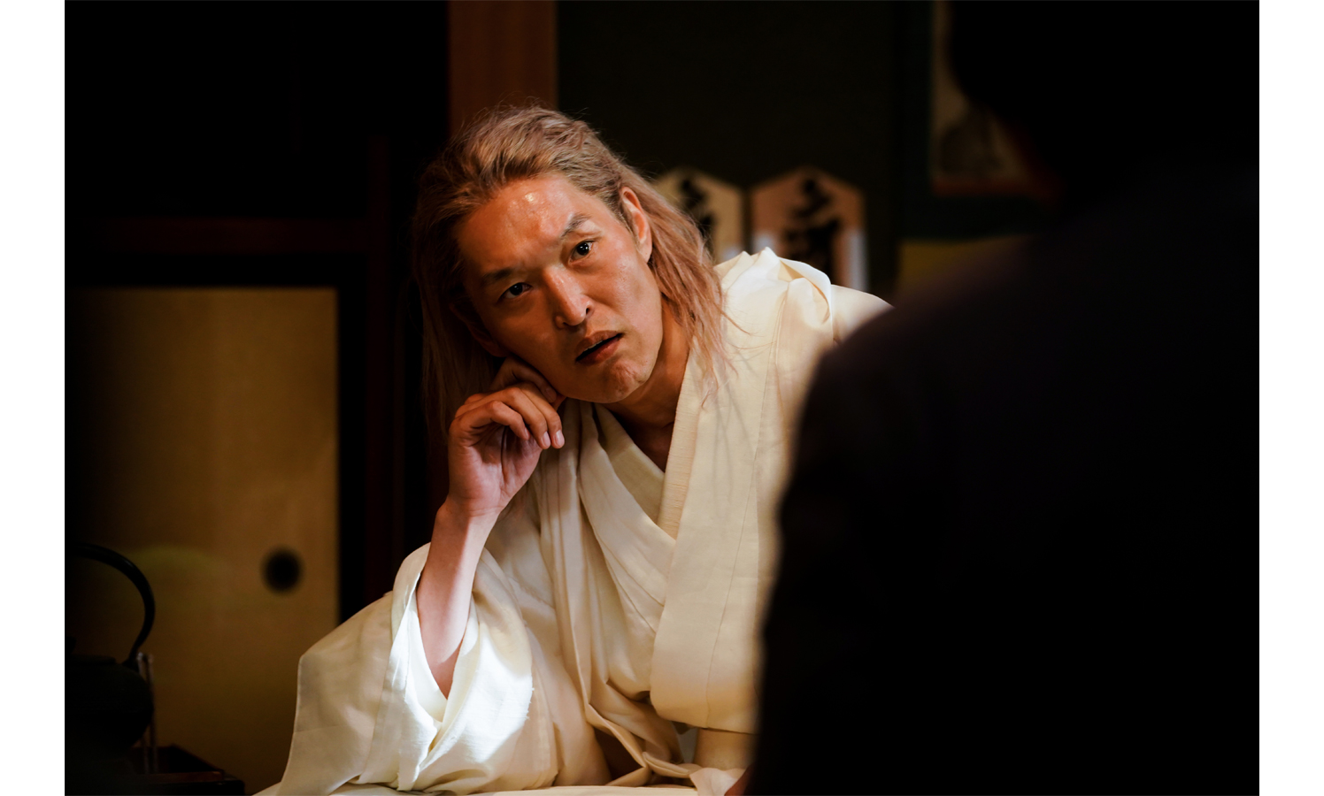 この度解禁された映像では、危険な宗教家・阿闍梨(千原ジュニア)と阿闍梨の信者・ヤス(東出昌大)たちが集う衝撃の“儀式”の場面が切り取られている。阿闍梨に相談を持ち掛けるヤスの目の前に置かれたのは、刃物の付いた藁切り農具。阿闍梨はヤスを見据えながら、「小指、切って、奉納せえ。小指に魂乗っけて、宇宙に飛ばすねん」と口にする。まるで冗談のような無邪気さで言葉を放つ阿闍梨にヤスは戸惑うが、阿闍梨は「別に喰うわけやないねんから。まあ、俺が今まで何を食うてきたか知らん方がええやろけどな、ハハハハハ〜すごいよ〜すごいのよ〜」と笑みを浮かべ、その狂気に場の空気は一瞬で凍りつく。謎の暗殺者・新野風(松田龍平)や、山中狼介(窪塚洋介)の彼女・野々花(芋生悠)も異様な光景にただ呆然としているばかり。やがて、気分が悪くなり、その場を離れた田舎の不良・鉄平(渋川清彦)が廊下で見つけたのは、ずらりと並ぶホルマリン漬けの小指――。一体、この小指は何を意味しているのか。狂気と呪術が入り混じる阿闍梨の“異常性”を象徴する、戦慄の映像となっている。