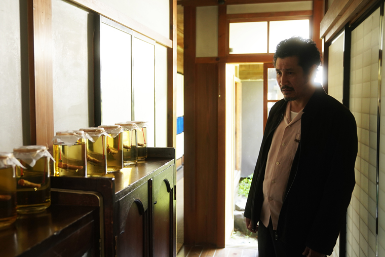 この度解禁された映像では、危険な宗教家・阿闍梨(千原ジュニア)と阿闍梨の信者・ヤス(東出昌大)たちが集う衝撃の“儀式”の場面が切り取られている。阿闍梨に相談を持ち掛けるヤスの目の前に置かれたのは、刃物の付いた藁切り農具。阿闍梨はヤスを見据えながら、「小指、切って、奉納せえ。小指に魂乗っけて、宇宙に飛ばすねん」と口にする。まるで冗談のような無邪気さで言葉を放つ阿闍梨にヤスは戸惑うが、阿闍梨は「別に喰うわけやないねんから。まあ、俺が今まで何を食うてきたか知らん方がええやろけどな、ハハハハハ〜すごいよ〜すごいのよ〜」と笑みを浮かべ、その狂気に場の空気は一瞬で凍りつく。謎の暗殺者・新野風(松田龍平)や、山中狼介(窪塚洋介)の彼女・野々花(芋生悠)も異様な光景にただ呆然としているばかり。やがて、気分が悪くなり、その場を離れた田舎の不良・鉄平(渋川清彦)が廊下で見つけたのは、ずらりと並ぶホルマリン漬けの小指――。一体、この小指は何を意味しているのか。狂気と呪術が入り混じる阿闍梨の“異常性”を象徴する、戦慄の映像となっている。