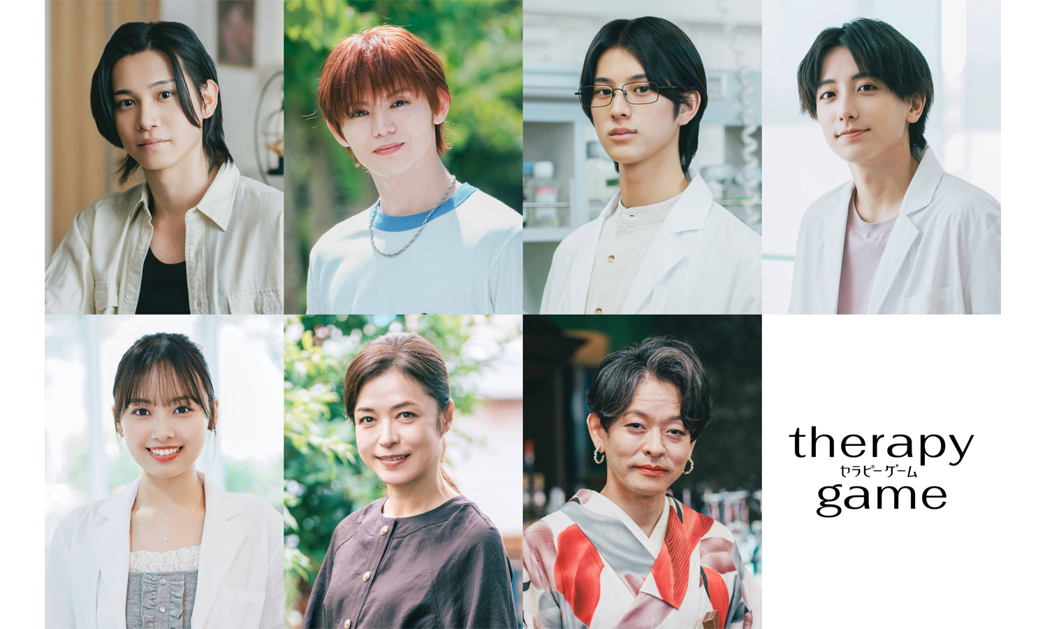 セラピーゲームは、シリーズ累計130万部を突破したBLアワード シリーズ部門 4年受賞の超人気作品。ツンデレフォトグラファー・三兎湊役を、BMSG所属のダンス&ボーカルグループ「MAZZEL」のメンバー・NAOYA。スパダリ獣医学生・生嶋静真役を、オルタナティブ歌謡舞踊集団「龍宮城」のメンバー・冨田侑暉が務める。