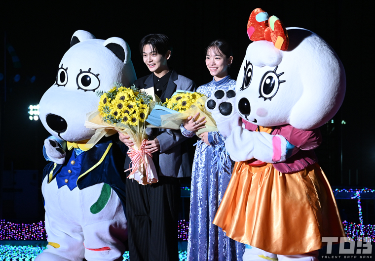 イベントではサプライズで映画にちなんだひまわり100本で作られた花束がプレゼントされ當間と齋藤ふたりで大喜びの姿をみせていた。