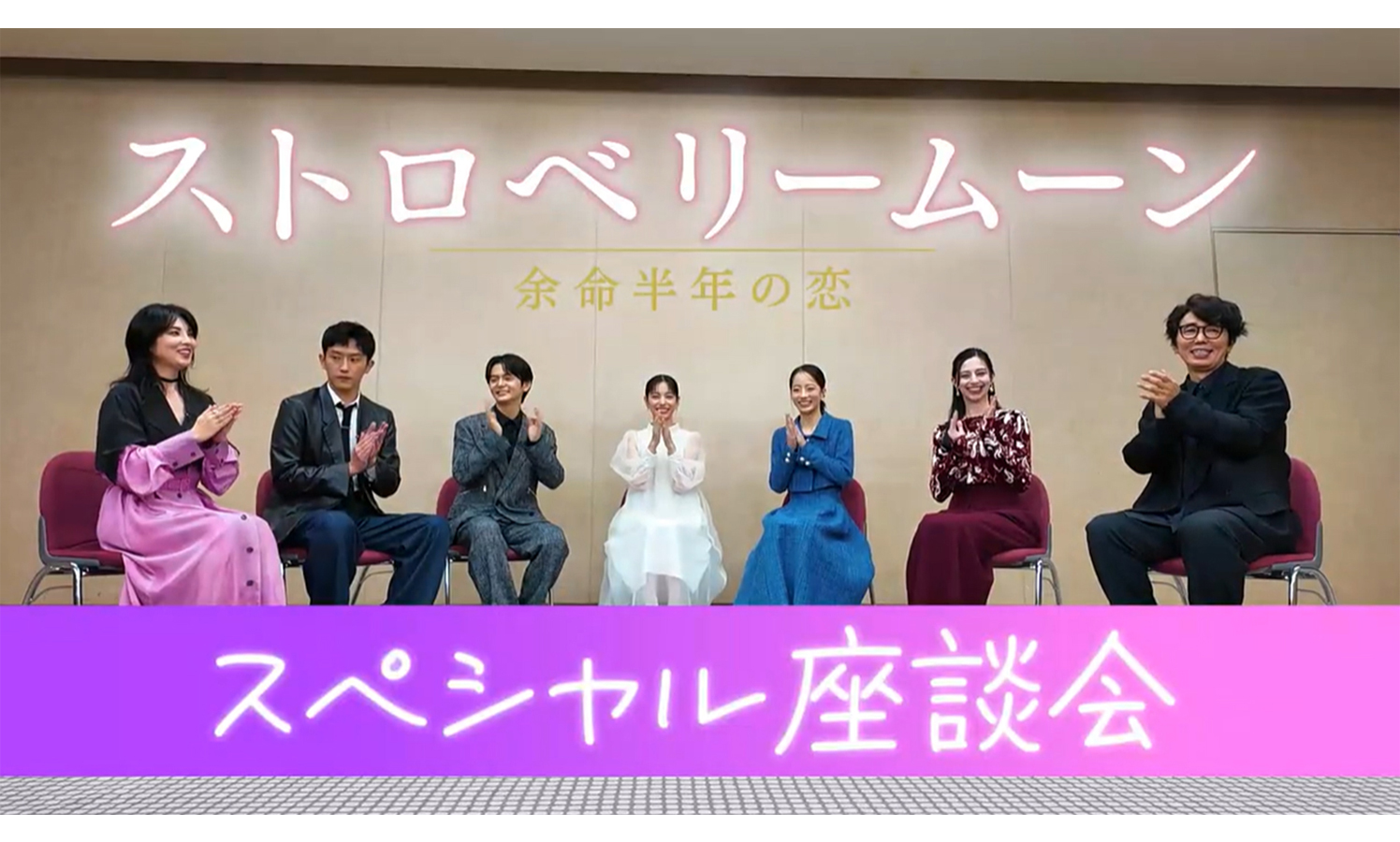 続いてのテーマは「一番感動したシーン」について。両親を演じたユースケと田中は「家族で車に乗っているシーンが多かったんですが、後ろに萌が座っている中で、振り向いて娘に見せる表情と実際の心情は全然違うことも多くて。3人の心境は違うけど、皆が思い合っていることがよく伝わる一面だなと思います」(田中)、「実際に3 人での撮影は車のシーンから始まっていましたしね。お互いが思い合っている中で、表に見せる顔と内情がまた違うという、桜井家のことがよくわかる場面だと思います」(ユースケ)と、それぞれがしみじみと様子で語る様子が収められている。残りわずかな人生を懸命に生きる萌と、そんな娘を温かく見守る両親の観る者の心を動かす家族愛も必見だ。そして最後に、本作で長編映画初主演を務めた當真が、「それぞれの人物たちが、誰かを思っている時の表情が本当に素晴らしいですし、人の温かみを自分もたくさん感じられたので、ぜひそこを見てほしいです」と、改めて作品の魅力を熱弁し、映像は終了。劇中さながらの穏やかで仲睦まじい雰囲気が漂う中で7人の作品への思いから撮影秘話などがたっぷり語られ、世代を超えて多くのファンの心を掴む物語の魅力が一層滲み出た、特別な座談会映像がここに完成した。