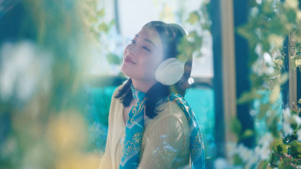 一人の自由な楽しい時間をいろいろな気分で演じ分けることが、あまりない経験でした。特にヘアメイクやファッションを香りに合わせて変えていくのが、女子としてすごく楽しい撮影でした。