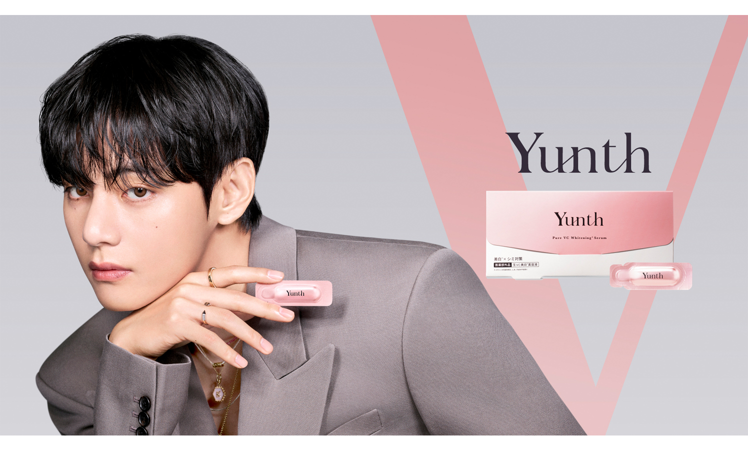 Yunthは、使⽤期限30秒の⽣ビタミンCを配合した「⽣VC美⽩美容液」などでおなじみのスキンケアブランド。2021年のブランド誕⽣以来、累計販売個数は650万個を突破。音楽やファッションなど、あらゆる表現において自分らしさを追求するVの姿は、「私だけの美しさが花ひらく」というYunthのブランドコンセプトを体現する存在で、新ブランドアンバサダーをとしてお迎えすることでYunthブランドの世界観をより多くの方々へ届け、日々の美容体験をさらに特別なものへと進化させていく。