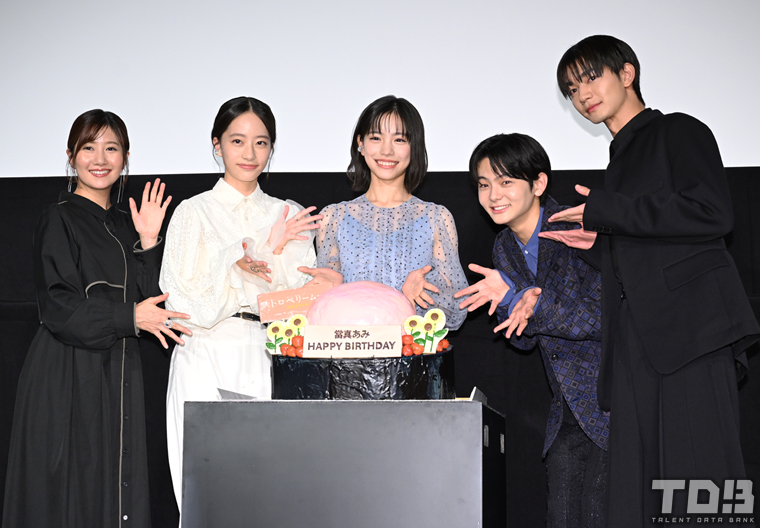 まだまだサプライズは終わらず、11月2日に19歳の誕生日を迎える當真にバースデーケーキでお祝いする場面も。MCからの呼びかけのもとキャスト・観客からお祝いの言葉をかけられた當真は「自分の誕生日があとちょっとなのも忘れてた」と驚きつつ、19歳の目標を聞かれ「高校生卒業してこれから色々自分で考えながら頑張っていきたいなと思っていて、歳を重ねるたびに祝ってくださる方がこんなにいっぱいいるのがとても今嬉しくて。これからも自分の誕生日を祝っていただけるような人でありたいなと思います」と力強く抱負を語った。
