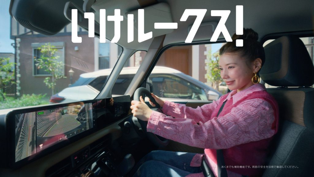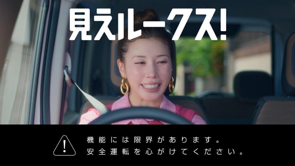 新CMのキーワードは“見えルークス”。新たに搭載されたインテリジェント アラウンドビューモニターの「フロントワイドビュー」は、見通しが利かない曲がり角で運転席から死角となる角の先を広角映像で確認できる視界サポート機能だ。そんな”見える”新機能により、安心して運転を楽しむ仲の姿を映し出している。