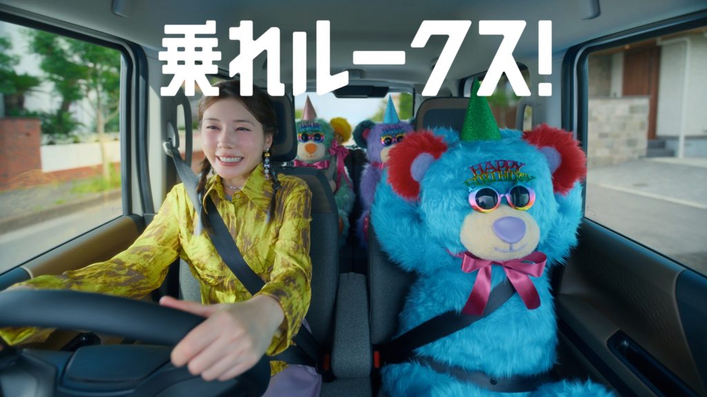 「角の先まで、見えルークス」「すれ違いも、いけルークス」「毎日気分が、あがルークス」/「見えない危険が、見えルークス」「室内ひろびろ、乗れルークス」「ワタシの楽しみ、ひろがルークス」の楽曲に合わせて、仲が運転に注意が必要な街中を軽やかに巡る。交差点への進入時の死角から接近する自転車もフロントワイドビュー機能によりしっかり確認。さらに、細い道でのすれ違いもスムーズで、「よっしゃ!」とほほ笑み、運転の不安や煩わしさから解放され、毎日の気分があがり満足気な表情を浮かべる。最後は“見える”機能にちなんだ「見えルークス」ポーズでCMを締めくくっている。