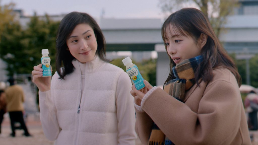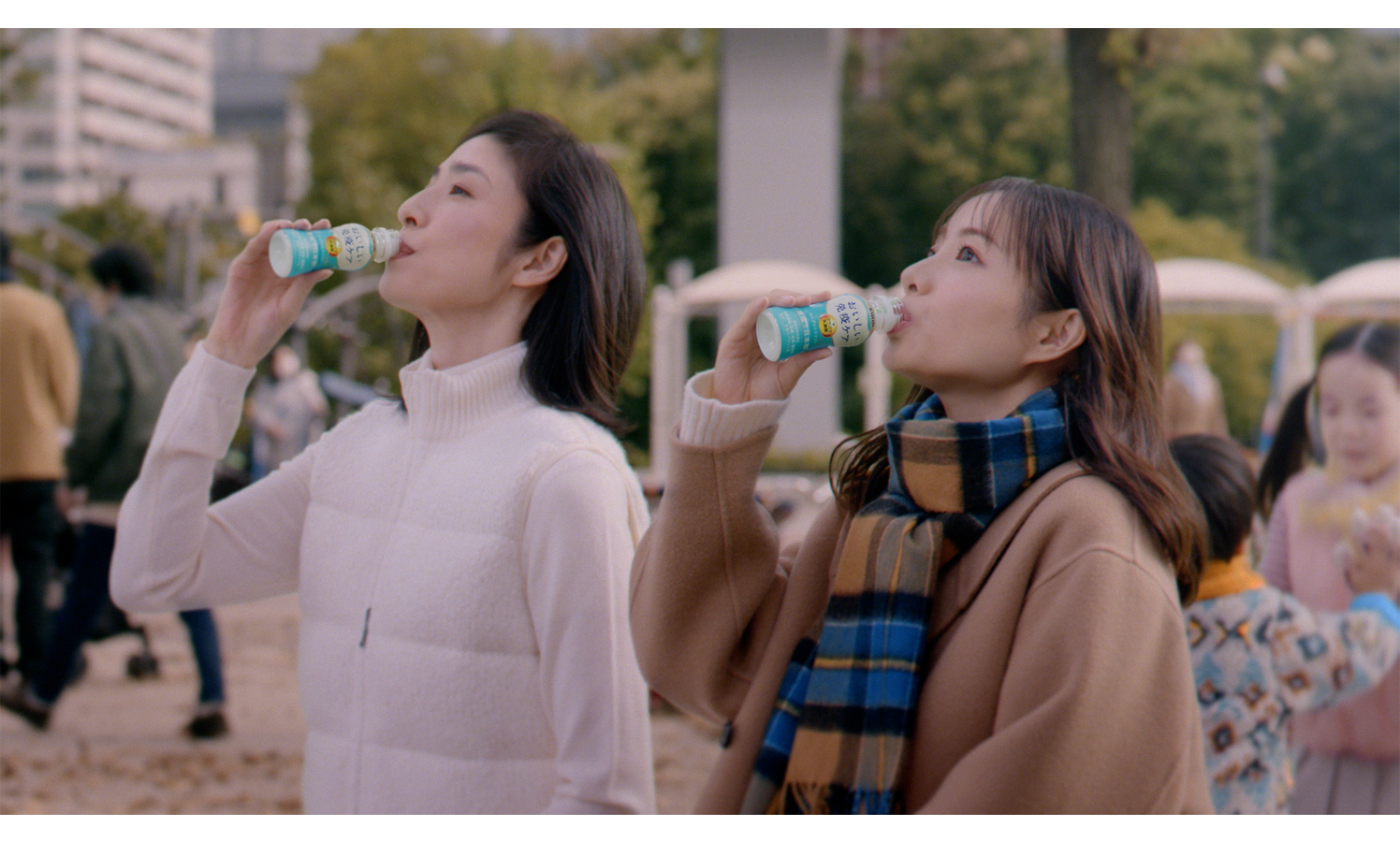 天海と石原のやりとりを通じて、冬の厳しさを家族で乗り切るために、体の中から対策する“免疫ケア”の重要性を伝えるCMに仕上がった。