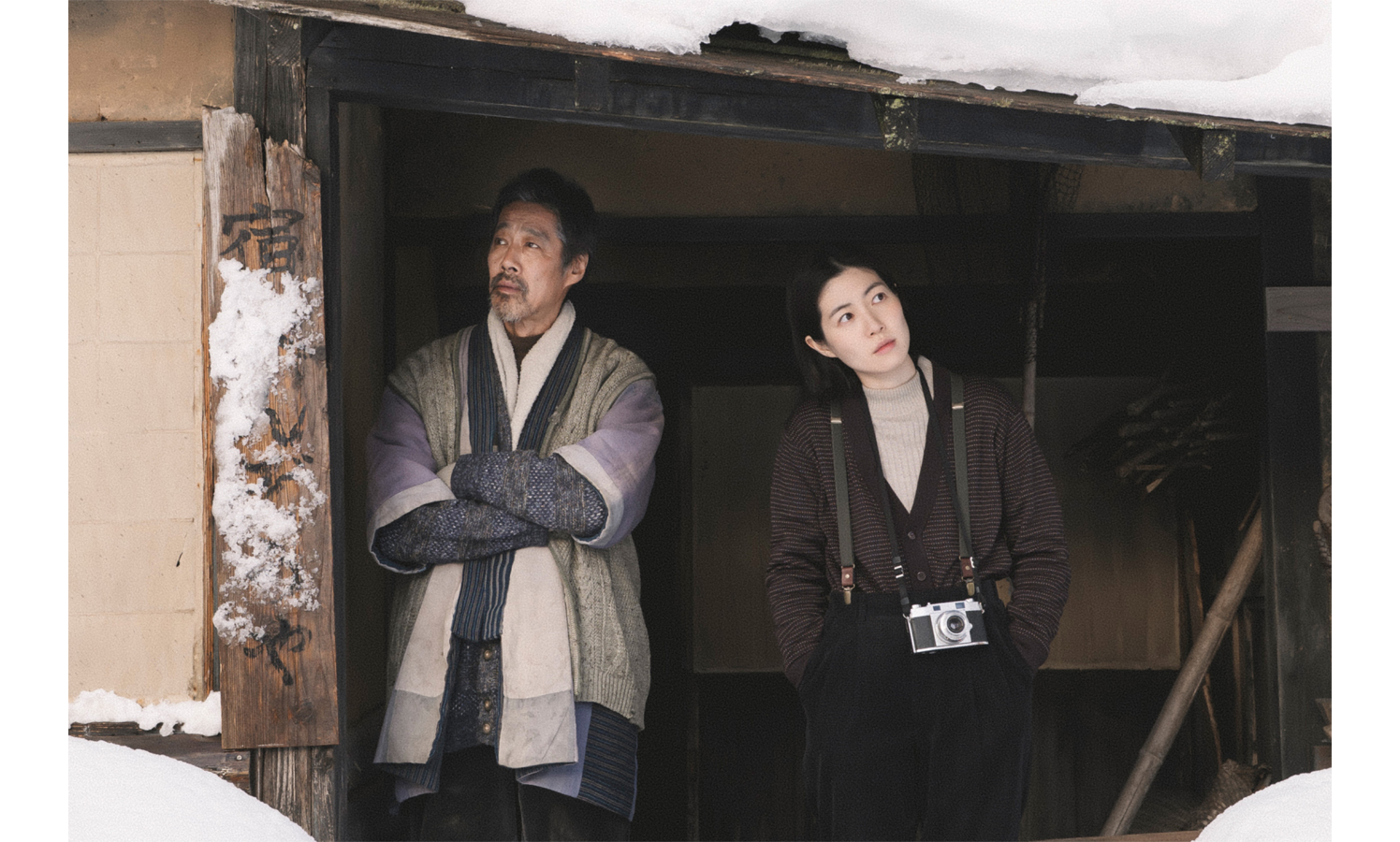 このたび解禁となるのは、主人公である脚本家・李(シム・ウンギョン)が訪れた北国の宿でのシーン。室内でも吐く息が白くなる、おんぼろ宿の主人・べん造(堤真一)がおずおずと李に提案したのは、自分の宿を題材に脚本を書いてみるのはどうだろうというアイデアだった。映画の舞台にでもなれば、自分の宿に観光客が来てくれるかもしれないという急な商売っ気を見せるべん造に、李はさっそく取材を始める。宿の片隅に放置してあるウサギ小屋に書かれている「ピョンちゃん」という名前を挙げて「あれはどなたがつけた名前なんでしょうか?」と問う李。「あれは子どもがつけるような名前だと思うんです。こういう宿屋は、普通家族でやっていると聞きますので……お一人なのは少し不思議だなと」とずばりと指摘すると、べん造は「別に大した理由はねえ……」と目をそらす。さらに李は宿の奥にある襖の絵に言及。「あれはどなたが描いたのかも気になります」と指摘し、「そのあたりが分かると、きっとストーリーが浮かび上がってくると思うんです」と語る。李の観察眼の鋭さに、辟易するべん造。「……みんな、いねぐなったの。もういねえってことだ」という返答から、何やら家族の事情があることを察した李は「すみません。立ち入ったことを聞いてしまいました」と謝るのだった。本人たちはいたって真面目なのだが、自分で提案しておきながら深堀りされてへそを曲げたような態度のべん造と李のやり取りがどこか可笑しく、各国映画祭での上映の際もくすくす笑いが止まらなかったワンシーンだ。李を演じるシム・ウンギョン×べん造を演じる堤真一という、日本アカデミー賞受賞俳優たちのみせる絶妙な間合いもポイント。