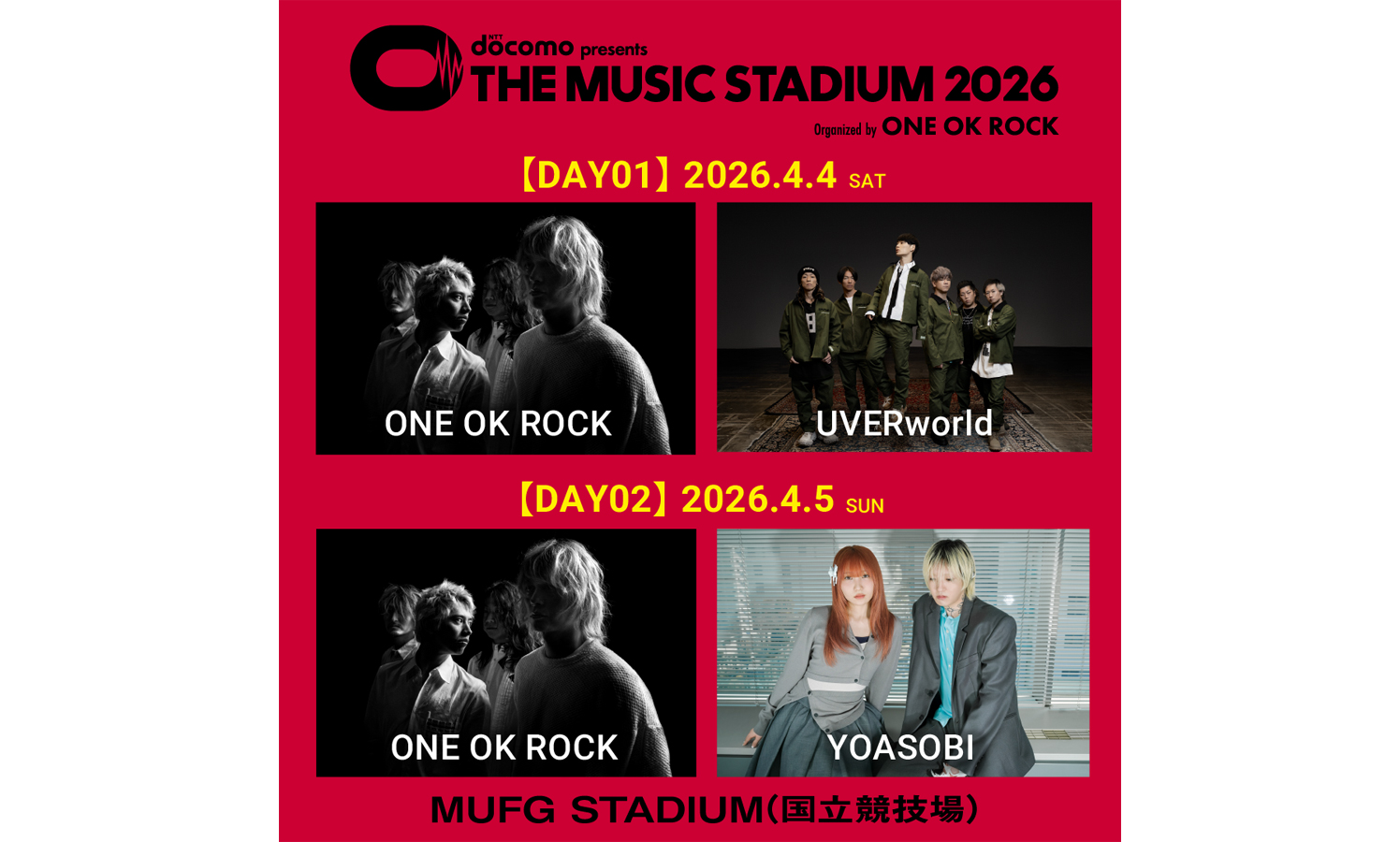 本イベントにはオーガナイザーとして発表済みのONE OK ROCKに加え、4月4日(土)にUVERworld、4月5日(日)にYOASOBIが出演。なおONE OK ROCKは両日出演する。