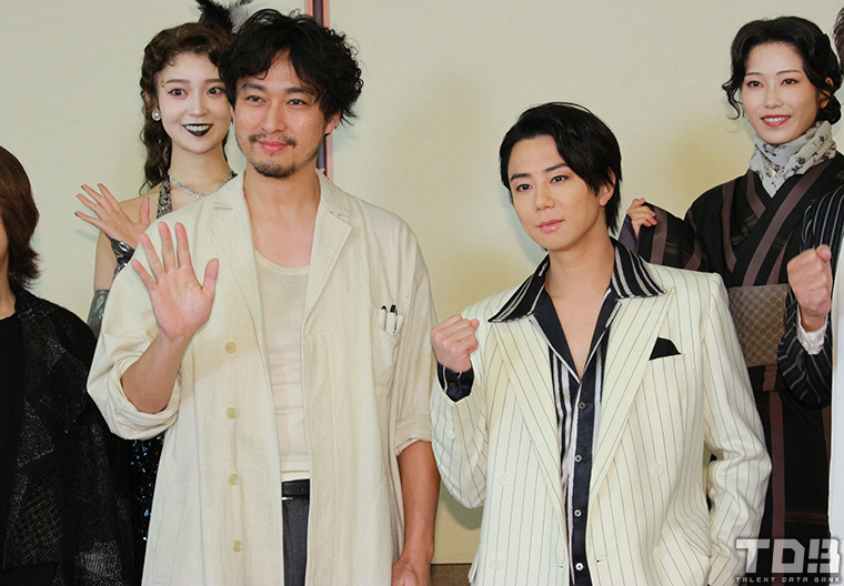 渡辺は「いよいよこの日が来たという気持ちがあります。チームワークに関しては、出来上がっているので、その思いをぶつけていって、どんどん熟成していって、大阪の新歌舞伎座まで走り抜けることを目標に頑張っていきたいと思います」と意気込み、横山は「稽古場で深作さんが演出をつけてくださったものが、明治座に入って色んなものが揃ったタイミングで、こういうことだったんだと見えてくるものがありました。それをお客さんに届けるのがすごく楽しみです。北山さんが『明治座の最前列がすごく近いね』とおっしゃっていて、距離が近いと思いますので、しっかりと3階席までお届けできるように、大阪公演まで走り抜けて行きたいと思います」とコメント。横山とダブルキャストを務める岡田は初舞台となるが、「深作さんと北山さんが目指す、超超かっこいい世界が出来上がっていて、それに着いていくのみだなと心から思っています。皆さんと最後まで駆け抜けられるように頑張ります!」と気合を見せる。