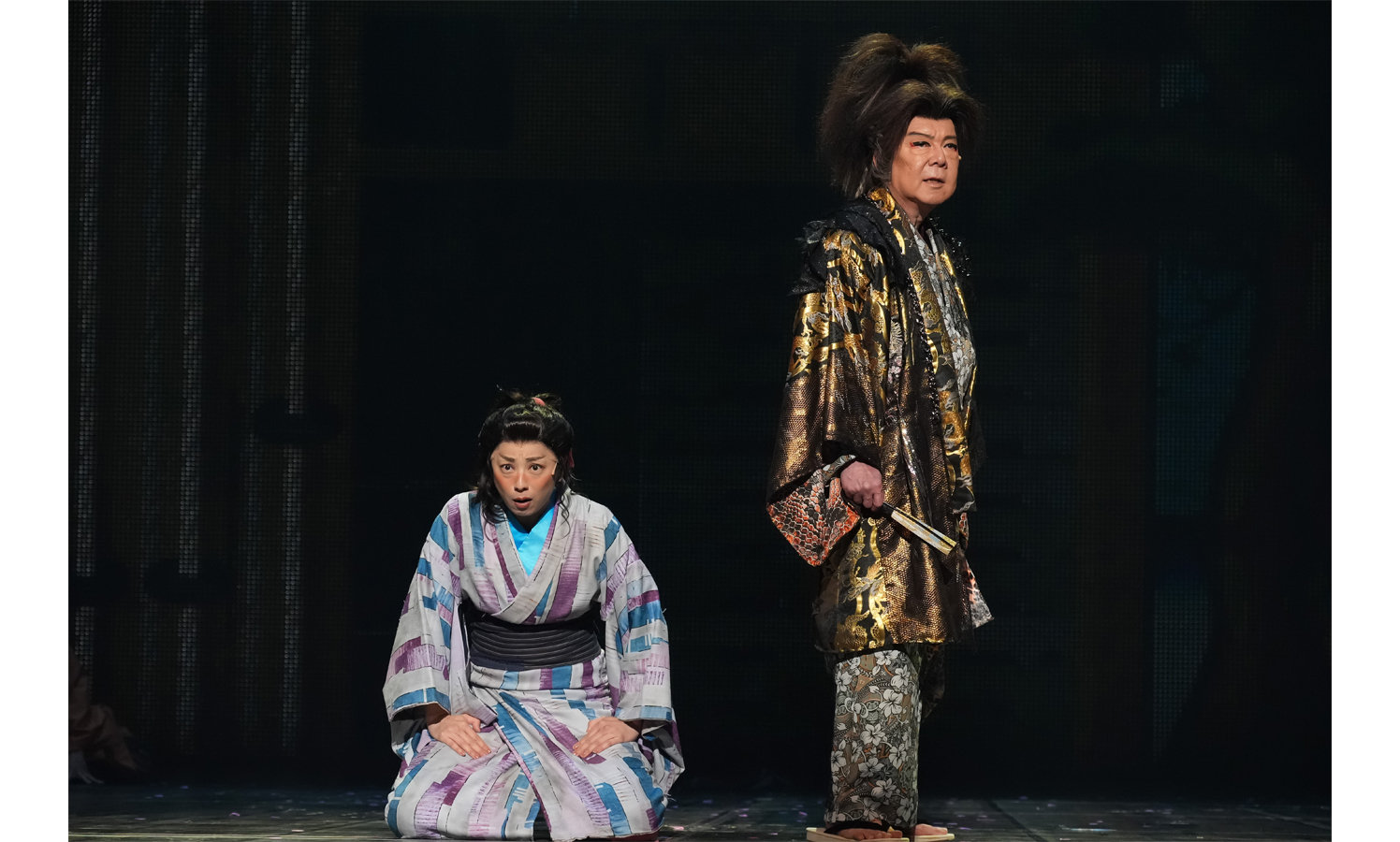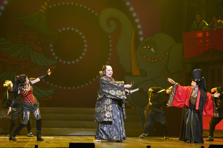 また、二幕になると河野まさとくんと吉田メタルくんの瓦版売りが語り部となって、町衆たちと共に曲に乗せて物語るシーンがいくつかあるのですが、歌も踊りもスピード感も素晴らしいのでお見逃し無く。