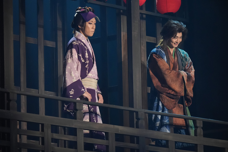 今回、私は女人禁制の時代にこっそりと闇歌舞伎に出演している女役者を演じています。闇歌舞伎のステージの役所と普段の姿、両面を演じる事で芝居への情熱をお伝えしたいです。