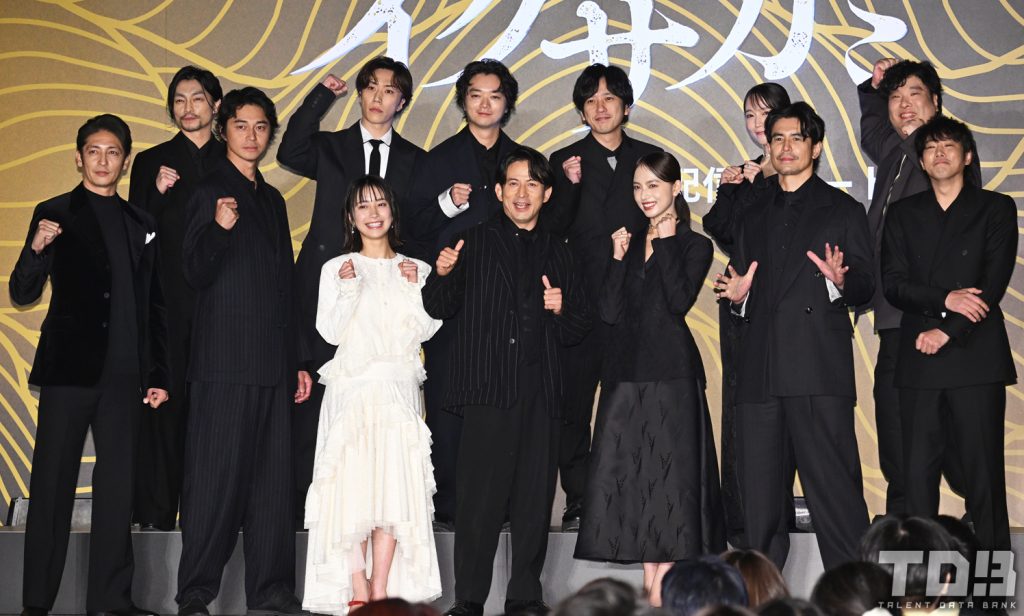 東海道を舞台にした命がけの戦い“蠱毒”を運営する槐を演じた二宮は「とにかく僕はもう勘弁してくれって言ったんですけどプロデューサーがどうしても出てほしいという一言があって…」と岡田の顔を伺いつつにやりと挨拶。続けて「現場に行かせていただいたらこんなすごい人たちばっかりいて、この人たちが一斉に僕の方を見て僕の話を聞いてると思うととんでもない世界だなと思っちゃってそこにまず圧倒された。やっぱりこれだけの人が集まるのはこのチームじゃなきゃできなかったことだと思うし、どこのカットを見ても主役しか映ってないってことが僕はすごく驚きでした。なので、ここにいれてほんと幸せだな」と撮影を振り返り笑顔をみせた。