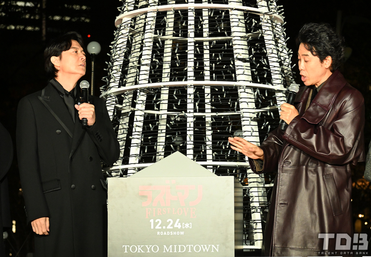 その後無事にツリーの明かりが灯り会場を『映画ラストマン』カラーが彩ると福山は「皆さんの顔がよく見えます」と会場を見渡し、大泉は「シャボン玉も飛んでる」と無邪気に喜びをみせる。