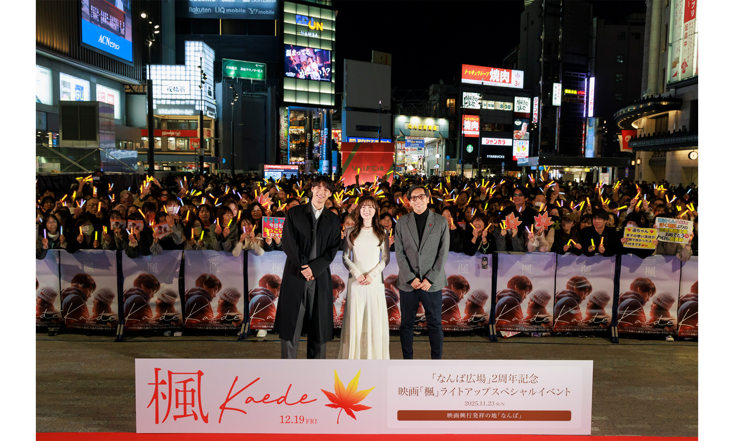 こうして「なんば広場」2周年記念 映画『楓』ライトアップスペシャルイベントは大盛況のうちに終了。映画興行発祥の地・なんばが、映画作品と連携する象徴的な取り組みとして、多くの来場者の心に刻まれる時間となった。