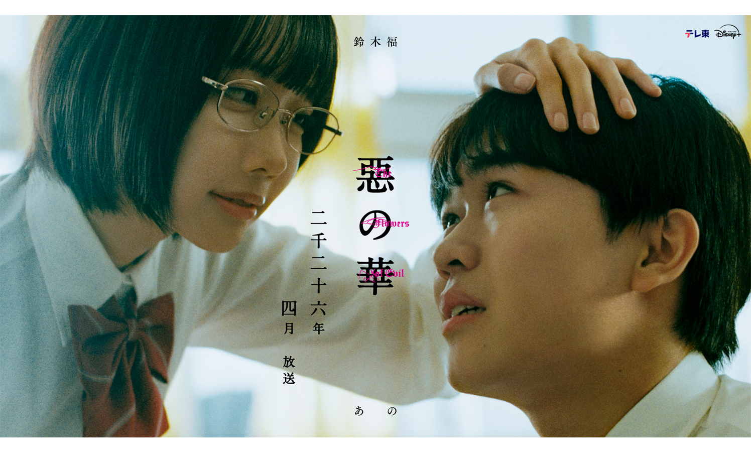 W主演の1人は、ドラマ・映画での俳優業の傍ら、朝の情報番組でもパーソナリティーを務めるなど幅広く活躍を続けている鈴木福。テレ東のドラマでは今回が初主演。そんな鈴木が演じる、春日高男(かすが たかお)は、ボードレールの詩集『惡の華』を愛読していることで、自分は他のクラスメートとは違うと思い込んでいる少年。良くも悪くも現実から目を背けてしまう一面があり、根拠のない自信を抱いている一方で、自分に都合の悪い状況からは逃げようとする癖がある。
