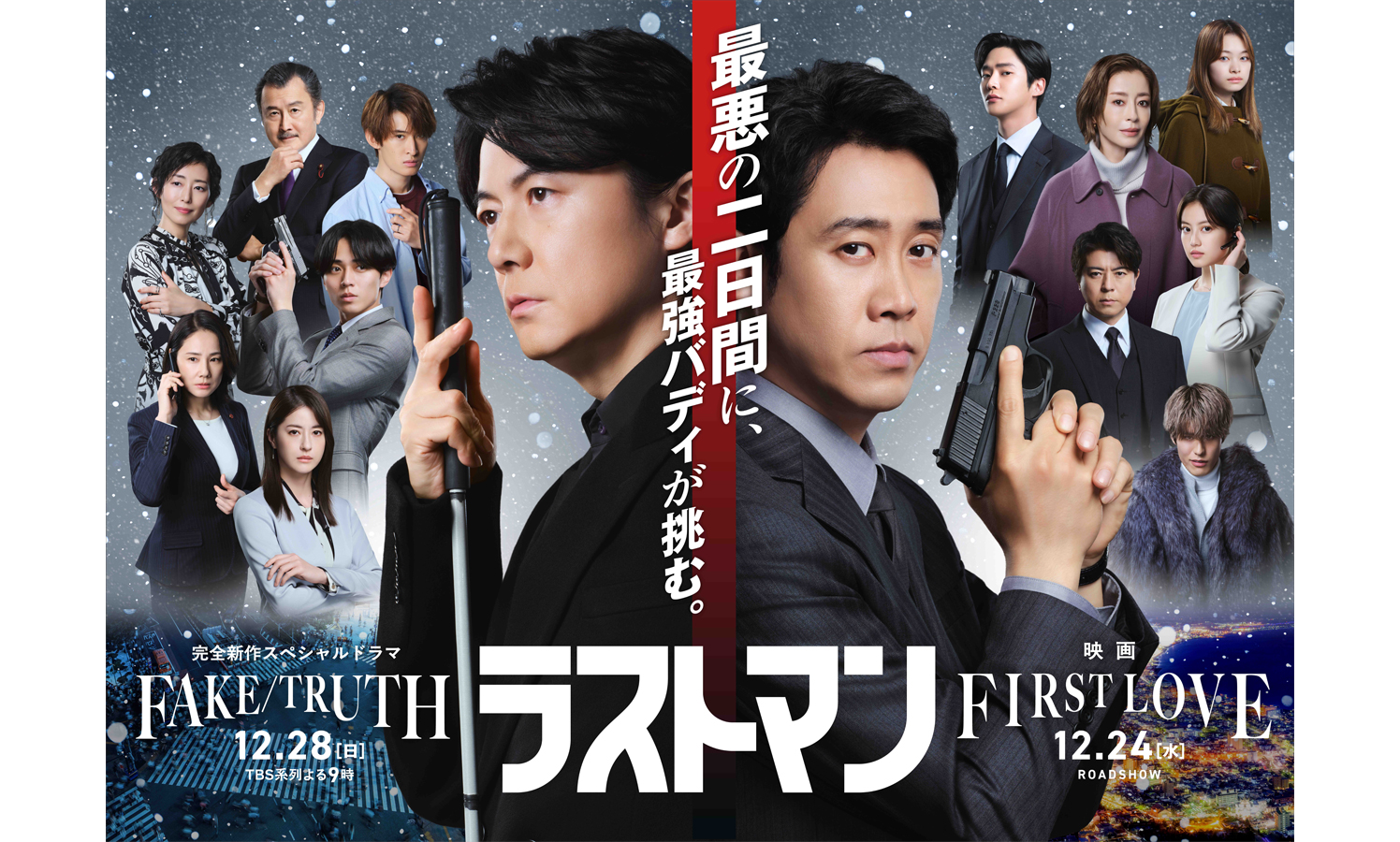 『ラストマン』は福山演じる全盲のFBI捜査官・皆実広見と、大泉洋演じる孤高の刑事・護道心太朗が凸凹バディを組んで難事件を解決していく、新時代の痛快バディドラマ。主人公・皆実広見は過去のある事故がきっかけで両目の視力を失いながらも、FBIで“事件を必ず終わらせる最後の切り札=ラストマン”と呼ばれ、数々の事件を解決してきた凄腕の特別捜査官。そして交換留学生としてアメリカからやってきた皆実のアテンド役を命じられたのが、犯人逮捕のためには手段を選ばない孤高の刑事・護道心太朗。肩書も性格も全く異なる二人だったが、徐々に力を合わせて事件を解決する“無敵のバディ”に。さらにドラマ後半では皆実と心太朗の過去の因縁が明らかになり、二人が実の兄弟だったという衝撃の事実が判明。さらに強い絆を手にした二人が、この冬、映画とドラマで史上最悪の難事件に挑む。