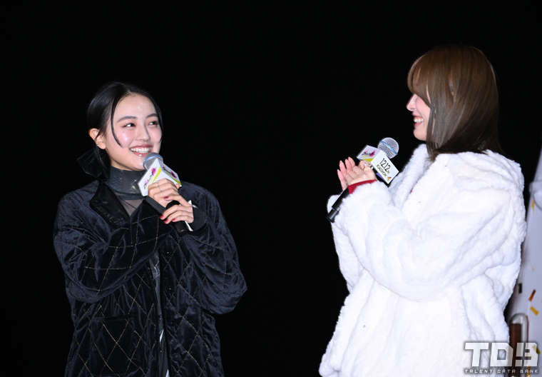 この日は冬のロマンティックな風物詩とも言えるイルミネーションが煌めくよみうりランドにて、タイトルの『ロマンティック・キラー』にちなみ前代未聞の“イルミネーション消灯式”が開催。カウントダウンに合わせて上白石がスイッチを押しロマンティックな仕掛けを“キラー(消灯)”すると見事に会場は暗闇に包まれた。