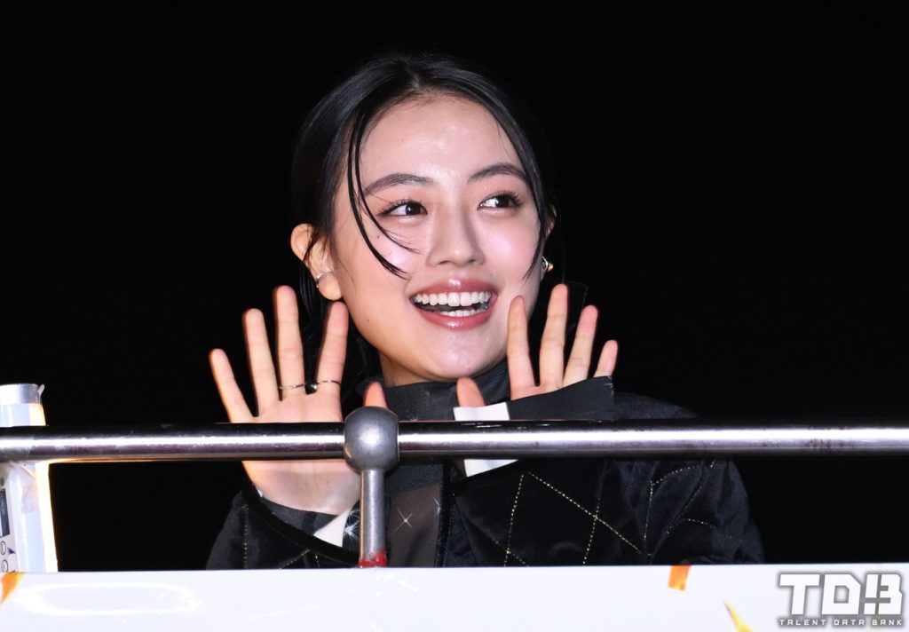 その後YouTubeの企画で作成したデザインを纏った“ロマンティックラッピングバス”に乗って登場したキャスト陣、観客に手を振るなどファンサービスに会場は黄色い歓声に包まれる。