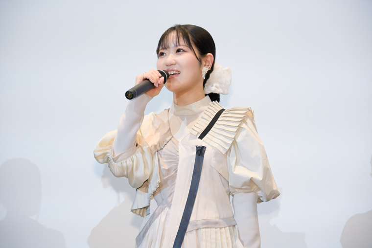 演出面で⼀番気をつけたことについて福岡監督は、「設定は紙の束にしたら広辞苑くらいになりました(笑)」とニヤニヤ。「すごい作品の再現をするために設定や細かいものを作りました」と補足した福岡監督は、それもこれもすべてキャラクターをちゃんと描くために必要なものだったと説明。目指していたことを問われた福岡監督は「深冬ちゃんと真白ちゃんを好きになってもらえたら、という思いでした」と作品に込めた思いを笑顔で答えていた。