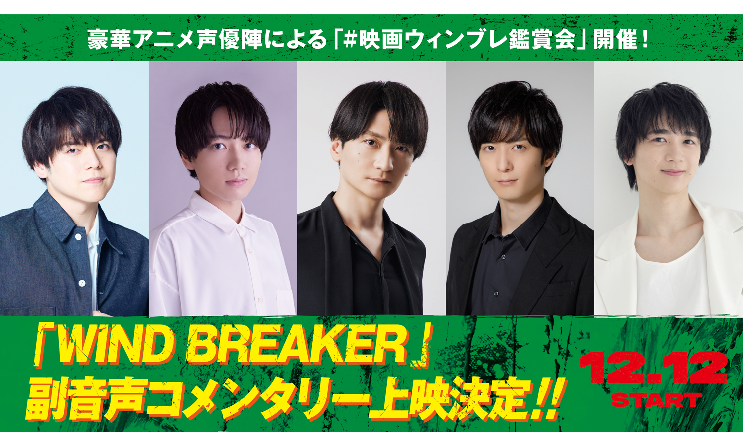 さらに!アニメ『WIND BREAKER』でキャラクターたちの声を担当する人気声優5人が集結した、まさかの副音声コメンタリー上映の開催も決定!登場するのは、内田雄馬(桜役)、千葉翔也(楡井役)、島﨑信長(蘇枋役)、梅原裕一郎(十亀役)、戸谷菊之介(兎耳山役)という超豪華声優陣。