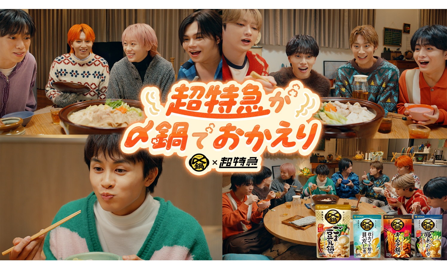 本コラボキャンペーンでは、共同生活を送る超特急のメンバーが「〆鍋」を囲みながら、いつまでも会話が尽きない様子描かれており、「〆鍋」を囲むことで生まれる、心までほぐれるあたたかな時間をお届けする。