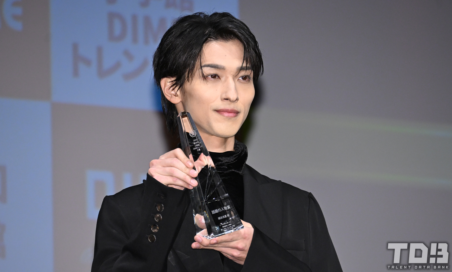 ジャケットを羽織りシックな装いで登場した横浜、トロフィーを受け取り「2019年にベストキャラクター賞をいただき6年越しに素敵な賞をいただけて大変光栄に思います」と喜びをコメント。