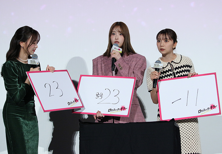 全力のバラエティ企画で大盛り上がりとなった舞台挨拶。生中継の最後には、主演を務めた4人から一人ずつ挨拶が。中島は「これから今年最後まで、そして来年もロマンティックという言葉をたくさん使って、たくさんの方に広めていただけると嬉しいです。そして映画も盛り上げてください。今日はありがとうございました!」とコメント。木村は「ロマンティックに染まる覚悟をしてからしっかりと見届けていただければなと思います」と話していた。