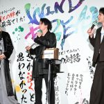 またステージ上にはファンから寄せられた数々のアツいコメントが記載された感想バックパネルが設置されており、食い入るように読んだ水上は『絶対できないけどしてみたい、ケンカの対話』というコメントに触れると「これは確実に男が書いてますね」とニヤリとしつつ「僕らも喧嘩を助長するようなものを作っちゃいけないですけれども、僕らもちっちゃい時に通ってきた不良映画、強い気持ちになったりするんですけども、良くない喧嘩は」と力を込めて笑わせる。