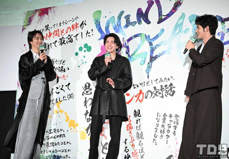 キャスト同士の裏で見たイケメンエピソードを聞かれたJUNONは「恒司のアクションがかっこいい」と水上を見つめながら答え、「型がめっちゃ綺麗だし、ちょっと笑ってるのがかっこいいんですよね、桜っていう立場でやってるのかもしんないんですけどすごくかっこいいなって思いました」と水上のアクションを絶賛した。