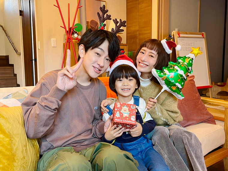 さらに、吉岡家のクリスマス写真が到着。家族3人でクリスマスグッズを身につけた、仲良しムードあふれる一枚となっている。別カットは「元科捜研の主婦」公式SNSで公開予定。