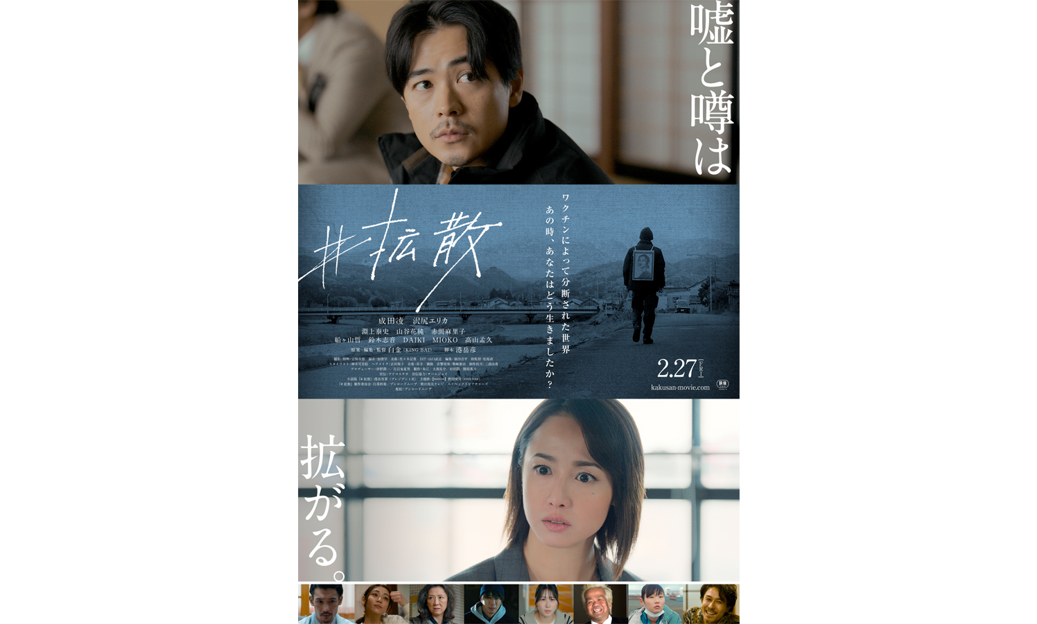 今回解禁された本予告では、ワクチン接種した翌朝に妻を失った主人公・信治(成田凌)の深い悲しみにはじまり、新聞記者・美波(沢尻エリカ)によって遺影の写真が“奇跡の一枚”として新聞に掲載され、世間の注目を集めた結果、“反ワクの象徴”として祭り上げられた様が描かれている。さらに哀しみとは別の感情(承認欲求と虚栄心)が芽生え、次第に心のバランスを失ってく。虚実あふれる情報に踊らされ続けた男が、混沌の果てに見た景色とは。