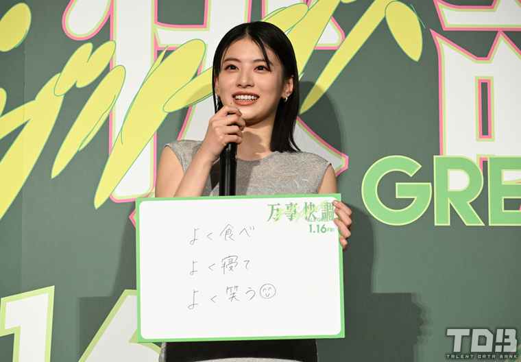 他のキャストが真面目な回答するのを聞いていた出口は「間違えちゃったかも(笑)」と微笑みながら『よく食べよく寝てよく笑う』と書かれたフリップをオープン。MCから「去年はあんまりできなかったんですか?」と質問されるも出口は「いや、いっぱいできたんですよ!いっぱいできたからすっごい幸せだったので今年も同じく幸せでいれますように」とにっこり、年始の過ごし方について聞かれ「もうずっと食べて寝てました」と満面の笑みをみせていた。