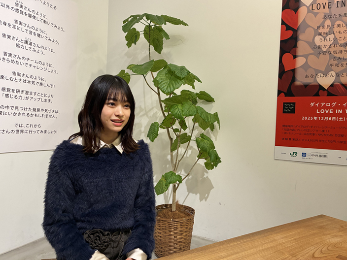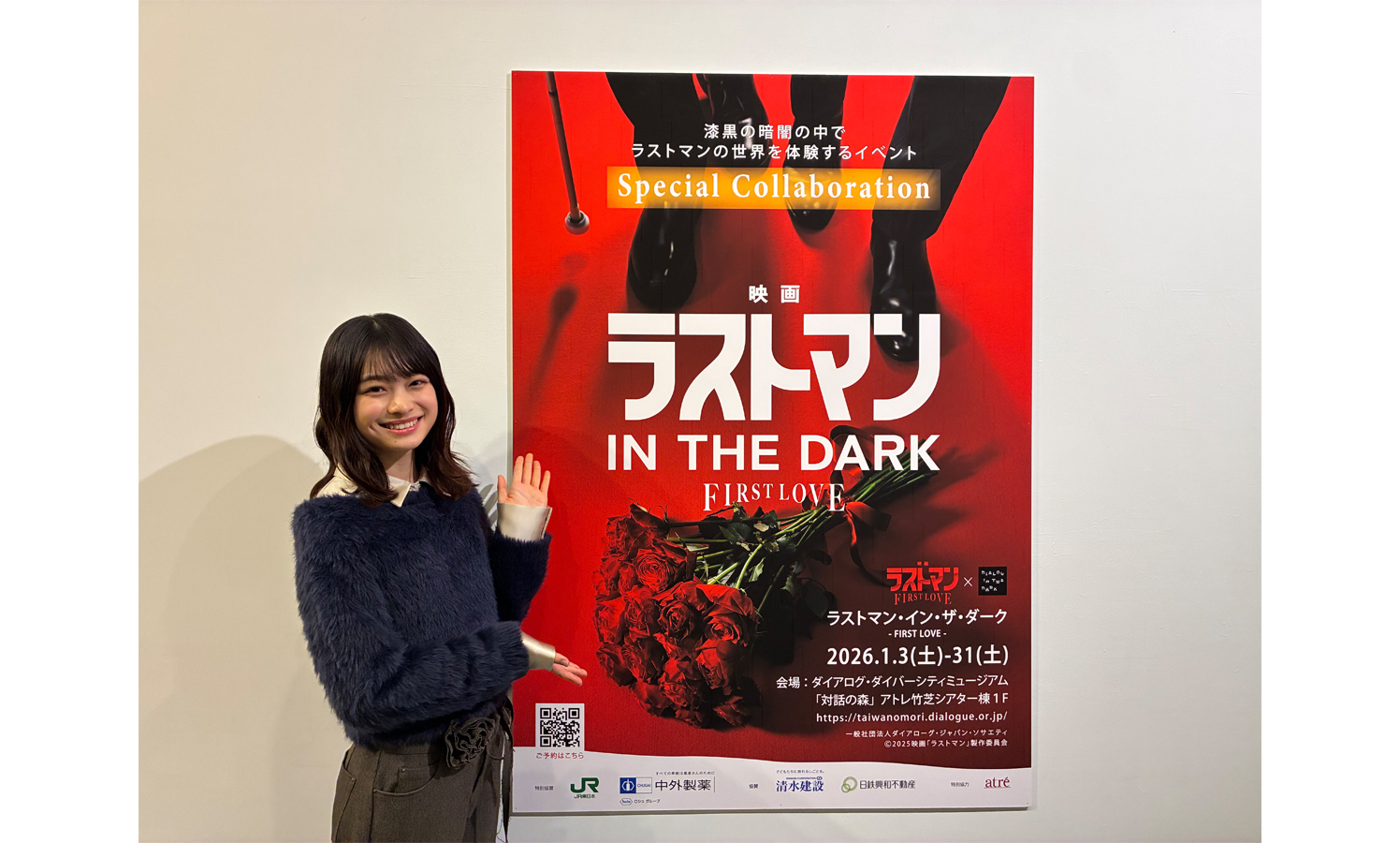 このたび宮沢りえ演じる皆実の初恋の人ナギサ・イワノワの娘で、皆実に助けを求めるニナを演じた月島琉衣が、本プログラムを体験。「最初は暗闇の中に溶け込んでしまうような感覚に不安もありました」と、初めは緊張していたという月島。しかし、「一緒に参加した方々と暗闇の中で同じ時を過ごすうちに、だんだんと安心感が芽生え、絆が生まれてきました」と振り返った。暗闇ならではの体験を聞かれると、「日頃は手を使わずとも見えるのでそこに何があるのか分かりますが、暗闇の中ではまず手の甲で触れてみたりなどして確かめていました。また、新たな発見もあり、プログラム内のカフェコーナーでリンゴジュースを飲んだのですが、暗闇の中の方が美味しく感じたのは驚きでした」とエピソードを披露。他にも、「「ありがとう」や「ここにいます」という言葉の一つひとつを掛け合うことが大切だと気づきました。暗闇の中にいるときは日常よりも温もりを感じ、仲間がいることの安心感や、一人ひとりの心の温かさ、仲間を思う気持ちというものが自分にも伝わってきました。私も暗闇の中で相手に合図を出したりするなど、自分からも温もりを伝えたいと思いました」とコメント。
