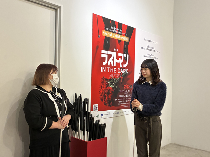 「ダイアログ・イン・ザ・ダーク」とは、最大8名のグループで視覚障碍者の案内により、完全に光を遮断した“純度100%の暗闇”の中で、視覚以外の様々な感覚やコミュニケーションを楽しむソーシャル・エンターテイメント。「ラストマン」では、連続ドラマ時から皆実の役作りのための全盲所作指導を、このダイアログ・イン・ザ・ダークの案内人である視覚障碍者のアテンドスタッフたちが監修。今回のコラボレーションでは作品の世界観を深く感じられるだけでなく、福山雅治演じる皆実広見のキャラクターの本質に迫る内容となっている。